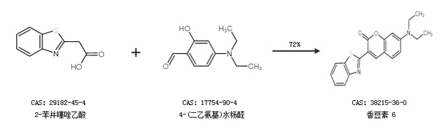 2.通過(guò)2-苯并噻唑乙酸和4-(二乙氨基)水楊醛合成香豆素 6,收率約72%;