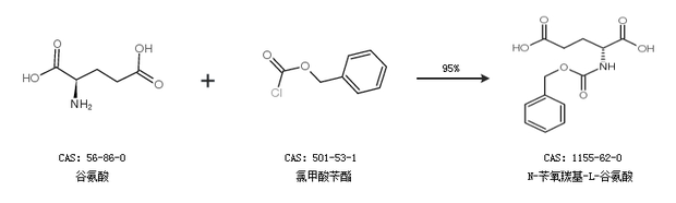 1.通過谷氨酸和氯甲酸芐酯合成N-芐氧羰基-L-谷氨酸,收率約95%;