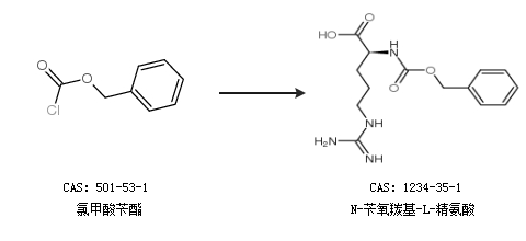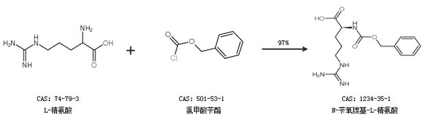 1.通過(guò)L-精氨酸和氯甲酸芐酯合成N-芐氧羰基-L-精氨酸,收率約97%;