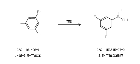 2.通過1-溴-3,5-二氟苯合成3,5-二氟苯硼酸,收率約75%;