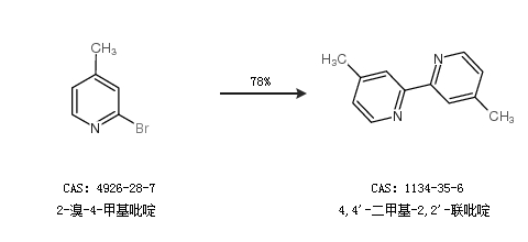 1.通過2-溴-4-甲基吡啶合成4,4''-二甲基-2,2''-聯(lián)吡啶,收率約78%;