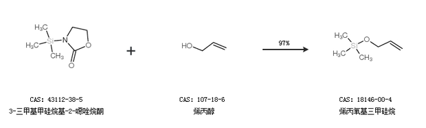 2.通過3-三甲基甲硅烷基-2-噁唑烷酮和烯丙醇合成烯丙氧基三甲硅烷,收率約97%;