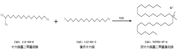 1.通過(guò)十六烷基二甲基叔胺和溴代十六烷合成雙十六烷基二甲基溴化銨,收率約72%;