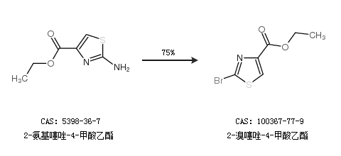 1.通過2-氨基噻唑-4-甲酸乙酯合成2-溴噻唑-4-甲酸乙酯,收率約75%;