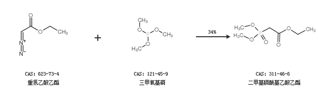 1.通過重氮乙酸乙酯和三甲氧基磷合成二甲基膦;宜嵋阴ィ章始s34%;