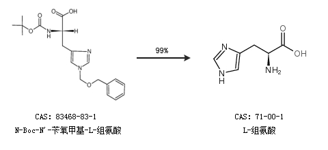 2.通過N-Boc-N''-芐氧甲基-L-組氨酸合成L-組氨酸,收率約99%;