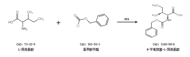1.通過L-異亮氨酸和氯甲酸芐酯合成N-芐氧羰基-L-異亮氨酸,收率約95%;