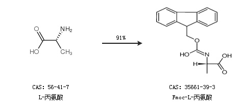 2.通過L-丙氨酸合成Fmoc-L-丙氨酸,收率約91%;