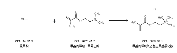 1.通過氯甲烷和甲基丙烯酸二甲氨乙酯合成甲基丙烯酰氧乙基三甲基氯化銨