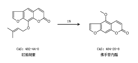 1.通過歐前胡素合成佛手苷內(nèi)酯,收率約1%;