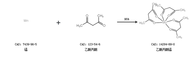 2.通過(guò)錳和乙酰丙酮合成乙酰丙酮錳,收率約95%;