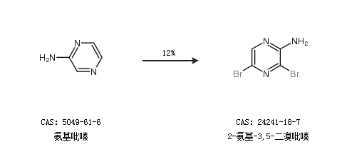 2.通過氨基吡嗪合成2-氨基-3,5-二溴吡嗪,收率約12%;