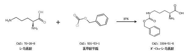 2.通過L-鳥氨酸和氯甲酸芐酯合成N''-Cbz-L-鳥氨酸,收率約87%;