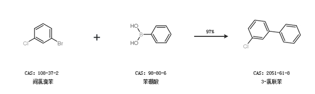 1.通過間氯溴苯和苯硼酸合成3-氯聯(lián)苯,收率約97%;