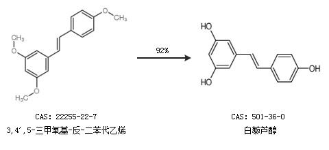 1.通過3,4'',5-三甲氧基-反-二苯代乙烯合成白藜蘆醇,收率約92%;