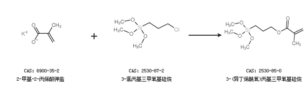 2.通過(guò)2-甲基-2-丙烯酸鉀鹽和3-氯丙基三甲氧基硅烷合成3-(異丁烯酰氧)丙基三甲氧基硅烷