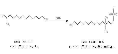 2.通過(guò)N,N-二甲基十二烷基胺合成3-(N,N-二甲基十二烷基銨)丙烷磺酸鹽,收率約88%;