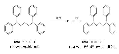 2.通過1,3-雙(二苯基膦)丙烷合成[1,3-雙(二苯基膦基)丙烷]二氯化鈀(II),收率約85%;