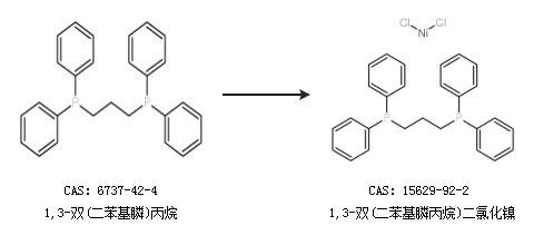 中文別名 1,3-雙(二苯膦)丙烷合氯化鎳;1,3-雙(二苯基膦);1,3-雙(二苯基膦)丙烷二氯化鎳;雙(二苯基磷)丙烷;雙(1,3-二苯基膦)丙基二氯化鎳(II);1,3-雙(二苯基膦)丙烷氯化鎳;1,3-雙(二苯基膦)丙烷氯化鎳(II);DPPP氯化鎳);[1,3-雙(二苯基膦)丙烷]二氯化鎳(II);1,3-雙(二苯基膦基)丙烷氯化鎳(II);二氯[1,3-雙(二苯基膦基)丙烷]鎳(II);1,3-雙(二苯基膦)丙烷氯化鎳;1,3-雙(二苯基膦)丙基氯化鎳;