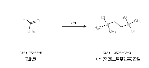 1.通過乙酰氯合成1,2-雙(氯二甲基硅基)乙烷,收率約43%;