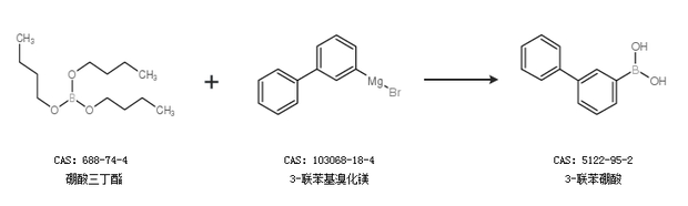 1.通過(guò)硼酸三丁酯和3-聯(lián)苯基溴化鎂合成3-聯(lián)苯硼酸