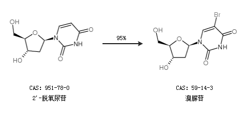 1.通過2''-脫氧尿苷合成溴脲苷,收率約95%;