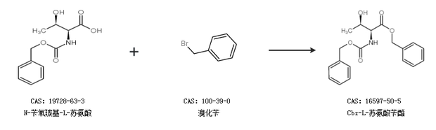 1.通過(guò)N-芐氧羰基-L-蘇氨酸和溴化芐合成Cbz-L-蘇氨酸芐酯