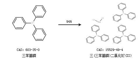 1.通過三苯基膦合成三(三苯基膦)二氯化釕(II),收率約94%;