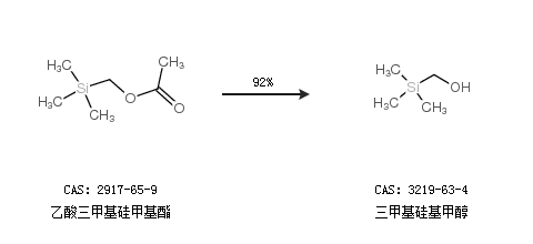 1.通過乙酸三甲基硅甲基酯合成三甲基硅基甲醇,收率約92%;