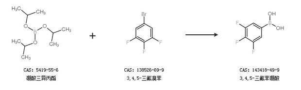 1.通過三甲氧基硼烷和3,4,5-三氟溴苯合成3,4,5-三氟苯硼酸