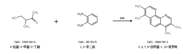 1.通過4-羥基-3-甲基-2-丁酮和1,2-苯二胺合成3,4,7,8-四甲基-1,10-菲羅啉,收率約49%;