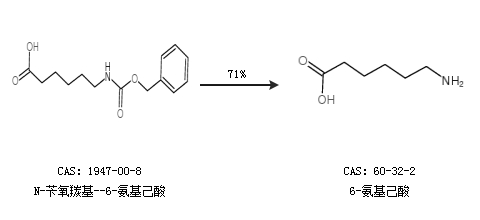 2.通過(guò)N-芐氧羰基--6-氨基己酸合成6-氨基己酸,收率約71%;