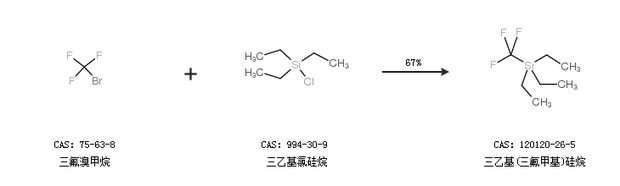 1.通過三氟甲烷和三乙基氯硅烷合成三乙基(三氟甲基)硅烷,收率約71%;