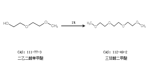 1.通過(guò)二乙二醇單甲醚合成三甘醇二甲醚,收率約1%;