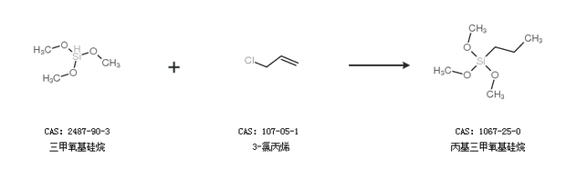 2.通過(guò)三甲氧基硅烷和3-氯丙烯合成丙基三甲氧基硅烷