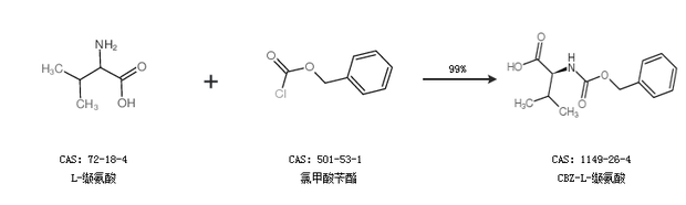 1.通過L-纈氨酸和氯甲酸芐酯合成CBZ-L-纈氨酸,收率約99%;