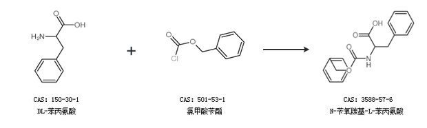 1.通過DL-苯丙氨酸和氯甲酸芐酯合成N-芐氧羰基-L-苯丙氨酸