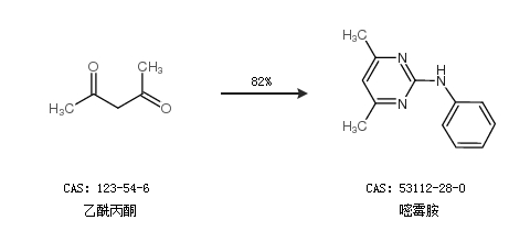 2.通過乙酰丙酮合成嘧霉胺,收率約82%;