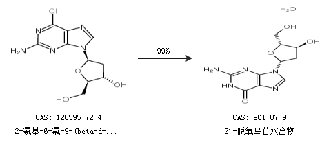 2.通過2-氨基-6-氯-9-(beta-d-2-脫氧核糖)嘌呤合成2''-脫氧鳥苷水合物,收率約99%;