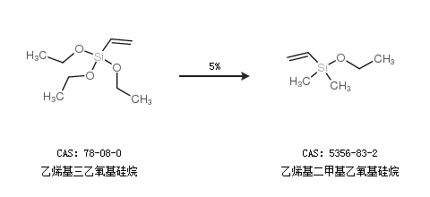 1.通過(guò)乙烯基三乙氧基硅烷合成乙烯基二甲基乙氧基硅烷,收率約5%;