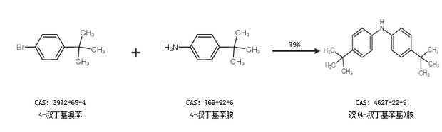 2.通過4-叔丁基溴苯和4-叔丁基苯胺合成雙(4-叔丁基苯基)胺,收率約79%;
