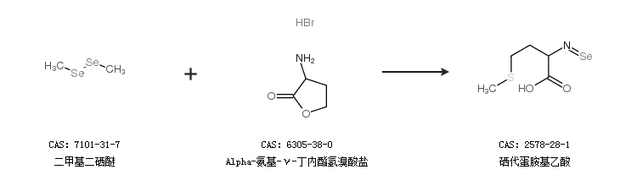 1.通過二甲基二硒醚和Alpha-氨基-γ-丁內(nèi)酯氫溴酸鹽合成硒代蛋胺基乙酸