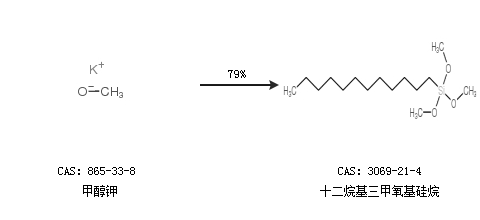 1.通過甲醇鉀合成十二烷基三甲氧基硅烷,收率約79%;