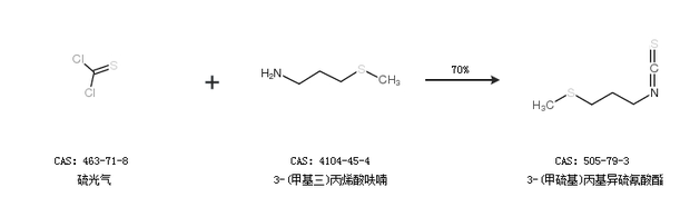 1.通過硫光氣和3-(甲基三)丙烯酸呋喃合成3-(甲硫基)丙基異硫氰酸酯,收率約70%;