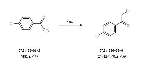 2.通過對氯苯乙酮合成2''-溴-4-氯苯乙酮,收率約98%;