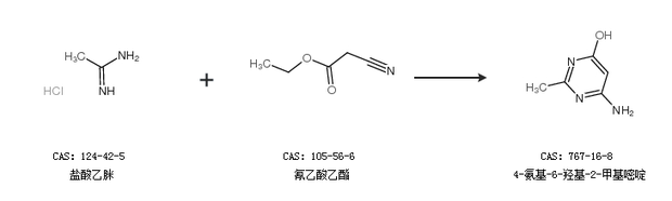 2.通過鹽酸乙脒和氰乙酸乙酯合成4-氨基-6-羥基-2-甲基嘧啶