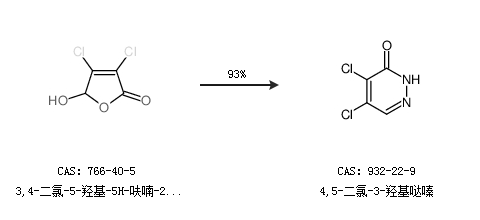 1.通過3,4-二氯-5-羥基-5H-呋喃-2-酮合成4,5-二氯-3-羥基噠嗪,收率約93%;