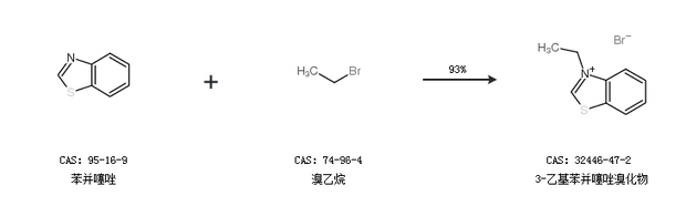 1.通過苯并噻唑和溴乙烷合成3-乙基苯并噻唑溴化物,收率約93%;