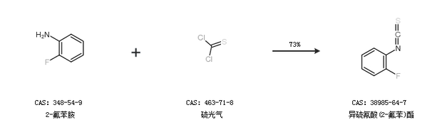 1.通過2-氟苯胺和硫光氣合成異硫氰酸(2-氟苯)酯,收率約73%;