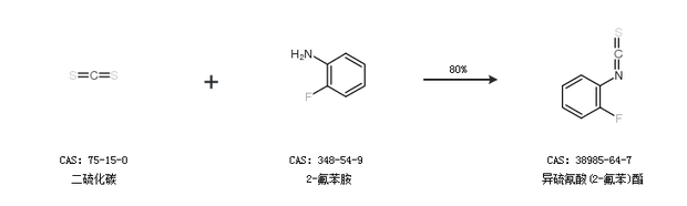 2.通過二硫化碳和2-氟苯胺合成異硫氰酸(2-氟苯)酯,收率約80%;